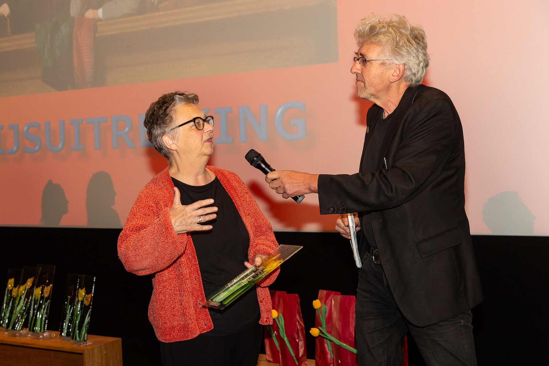 Op zondag 1 oktober is de tweede editie van het Amateur Speelfilm Festival Duin- en Bollenstreek in Floralis te Lisse gehouden. Het was een mooie dag met een heerlijk zonnetje, gezelligheid, vriendelijke mensen en veel films. Er waren maar liefst 17 speelfilms deze dag. De zaal ging open om 09.00 uur en om 10.00 uur startten we met de officiële opening van het festival. Het festival werd geopend door de wethouder Kunst en Cultuur van de gemeente Lisse, Mw. R. Austie-Ziengs, zij verving burgemeester Mw L. Spruit. Circa 100 filmliefhebbers en ge ïnteresseerden uit het hele land kwamen genieten van dit unieke festival. De zaal was niet helemaal vol, dus kom volgend jaar ook! De films zijn live in de zaal gejureerd. De deskundige jury bestond uit André van der Hout, Irma van Kampen en Niek Mannes. Na overleg reikte de voorzitter van de jury de prijzen uit. Iedere filmmaker die een film heeft ingestuurd, heeft een glazen herinnering aan het festival gekregen en voor iedereen die het festival heeft bezocht was er na afloop een zak met bollen!